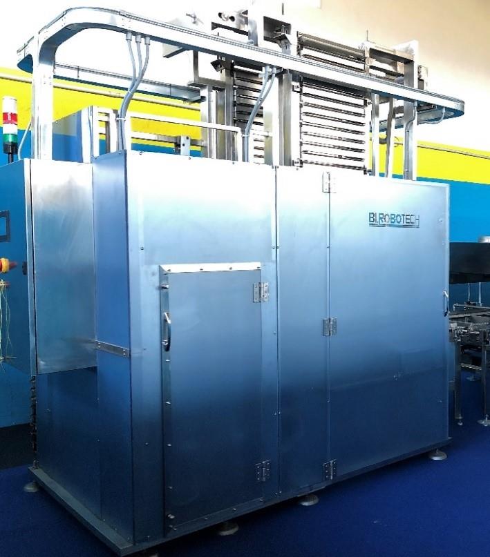 Macchina automatizzata ad altissima tecnologia innovativa, il suo funzionamento completamente automatico rende possibile l’impilaggio di teglie di diverse dimensioni, senza che venga mai fermato il nastro di entrata. Non necessita di regolazioni particolari e grazie al sistema anticollisione, in caso di blocco, evita la deformazione o la rottura delle teglie. Inoltre è possibile il collegamento meccanico perfettamente sincronizzato con il bollitore a vapore.